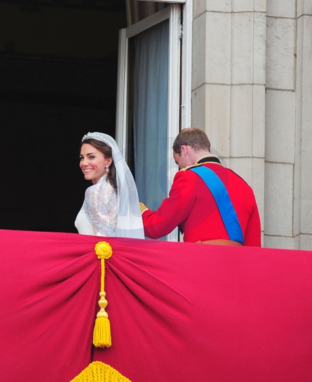 Slub ksiecia Williama i Kate Middleton - Panstwo Mlodzi na balkonie Palacu Buckingham, Londyn