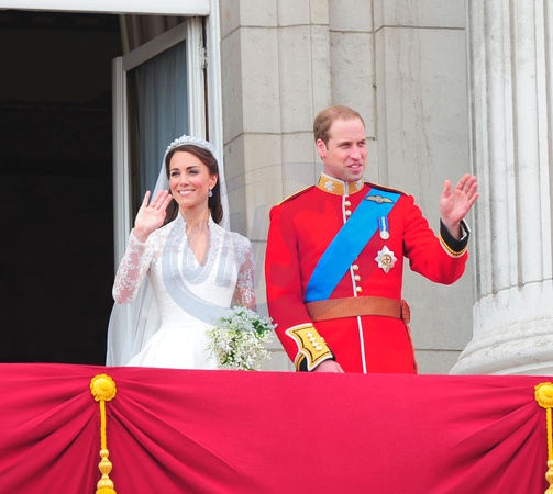 Slub ksiecia Williama i Kate Middleton - Panstwo Mlodzi na balkonie Palacu Buckingham, Londyn