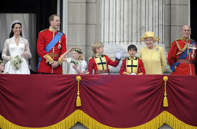 Slub ksiecia Williama i Kate Middleton - Panstwo Mlodzi na balkonie Palacu Buckingham, Londyn