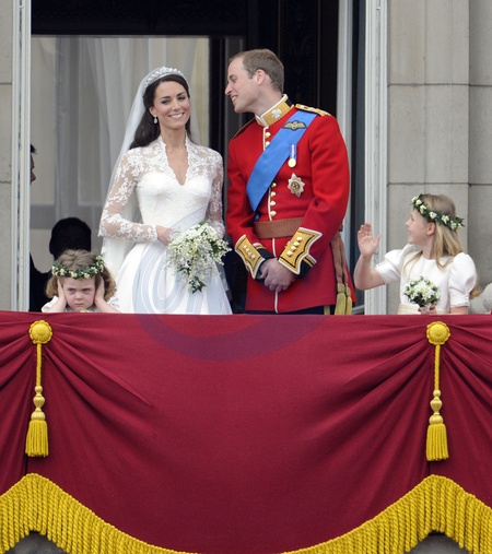 Slub ksiecia Williama i Kate Middleton - Panstwo Mlodzi na balkonie Palacu Buckingham, Londyn