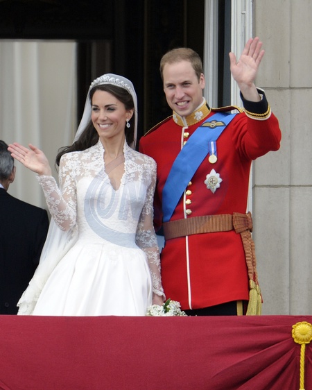 Slub ksiecia Williama i Kate Middleton - Panstwo Mlodzi na balkonie Palacu Buckingham, Londyn