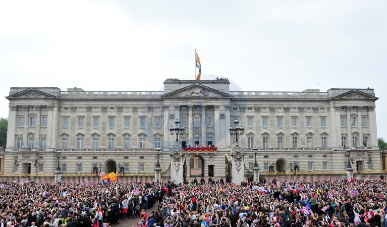 Slub ksiecia Williama i Kate Middleton - Panstwo Mlodzi na balkonie Palacu Buckingham, Londyn