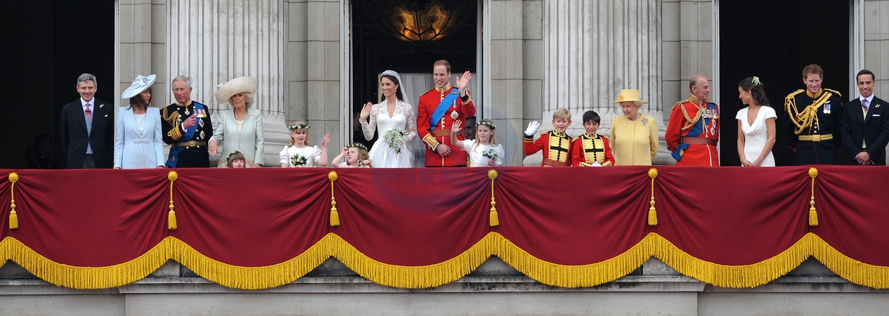 Slub ksiecia Williama i Kate Middleton - Panstwo Mlodzi na balkonie Palacu Buckingham, Londyn