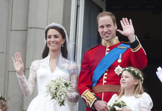 Slub ksiecia Williama i Kate Middleton - Panstwo Mlodzi na balkonie Palacu Buckingham, Londyn