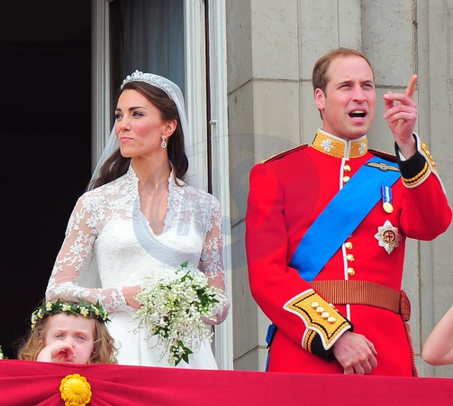 Slub ksiecia Williama i Kate Middleton - Panstwo Mlodzi na balkonie Palacu Buckingham, Londyn