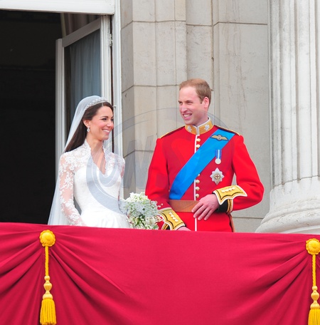 Slub ksiecia Williama i Kate Middleton - Panstwo Mlodzi na balkonie Palacu Buckingham, Londyn