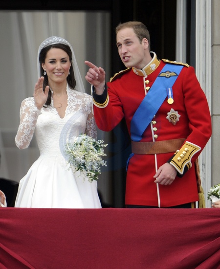 Slub ksiecia Williama i Kate Middleton - Panstwo Mlodzi na balkonie Palacu Buckingham, Londyn