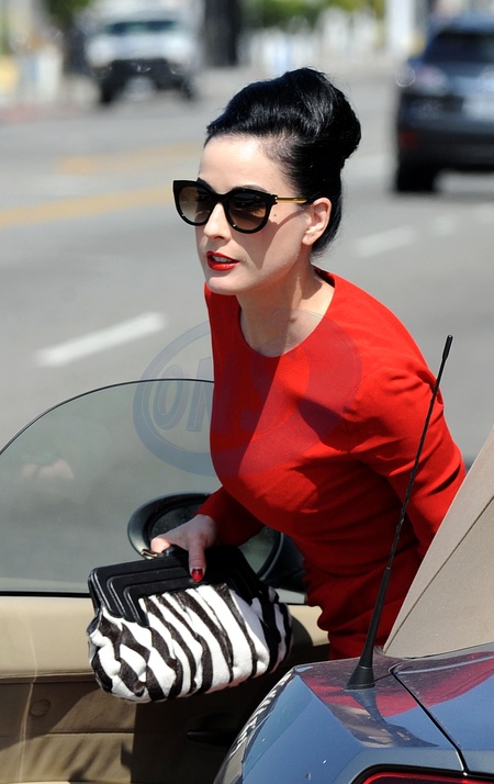 Elegancka Dita von Teese odwiedzila sklep Vivienne Westwood w Los Angeles