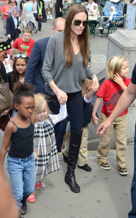 Angelina Jolie z corkami Zaharah, Shiloh i Vivienne, i z synkiem Knoxem