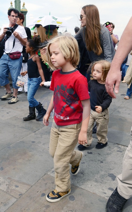 Angelina Jolie z corkami Zaharah, Shiloh i z synkiem Knoxem