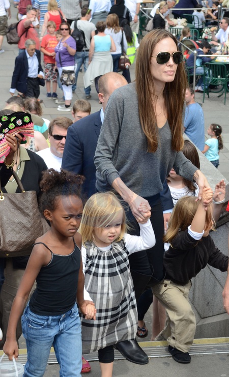 Angelina Jolie z corkami Zaharah i Vivienne, i z synkiem Knoxem