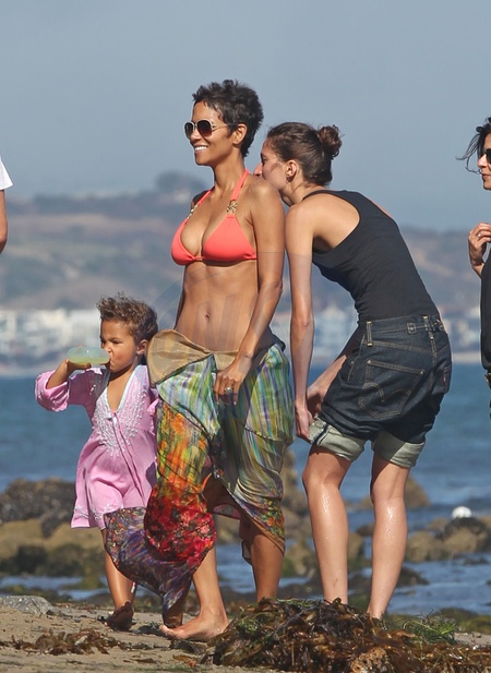 Halle Berry z rodzina i przyjaciolmi podczas swoich urodzin, na plazy w Malibu