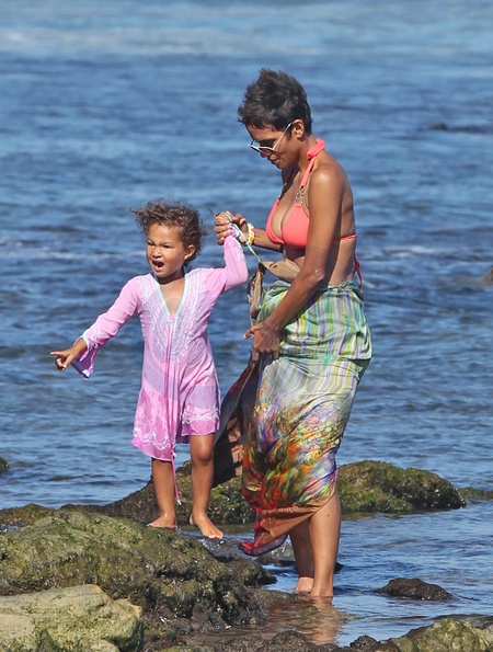 Halle Berry z rodzina i przyjaciolmi podczas swoich urodzin, na plazy w Malibu
