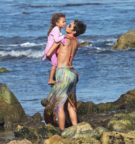 Halle Berry z rodzina i przyjaciolmi podczas swoich urodzin, na plazy w Malibu