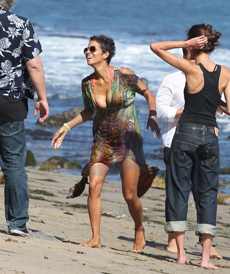 Halle Berry z rodzina i przyjaciolmi podczas swoich urodzin, na plazy w Malibu