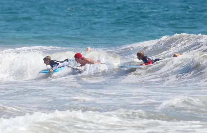 David Beckham surfuje z synami w Malibu