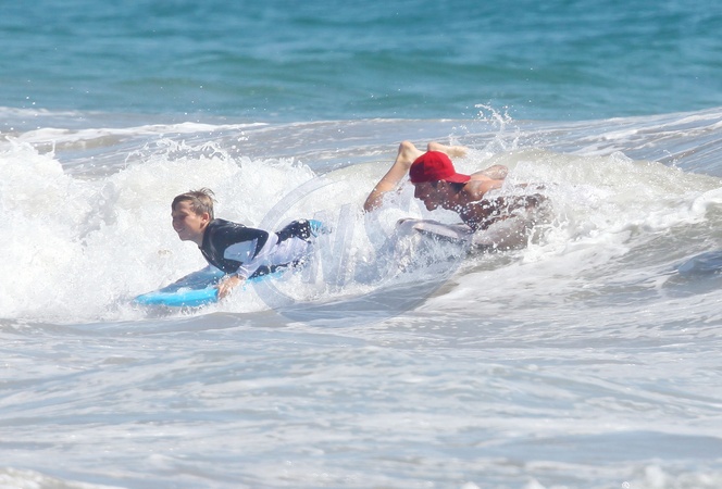 David Beckham surfuje z synami w Malibu