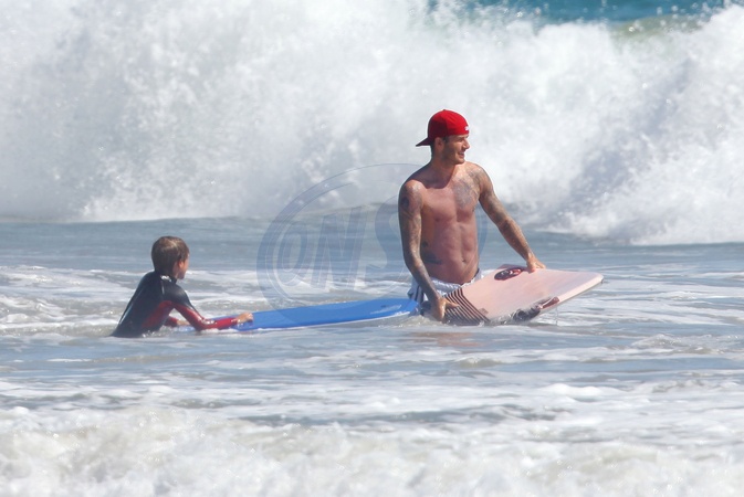 David Beckham surfuje z synami w Malibu