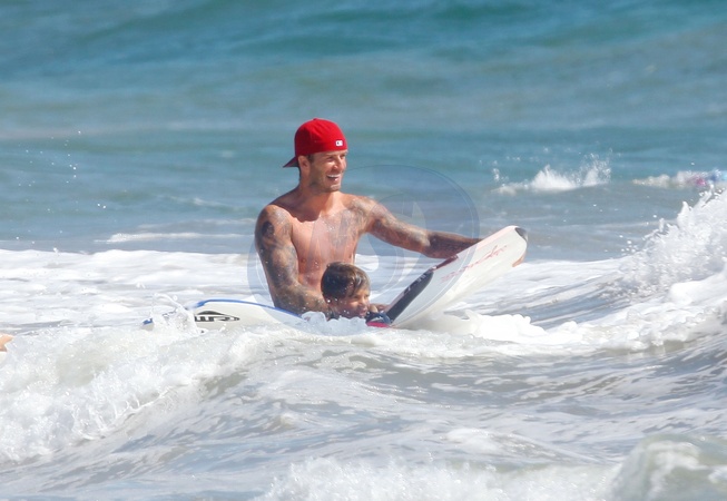 David Beckham surfuje z synami w Malibu