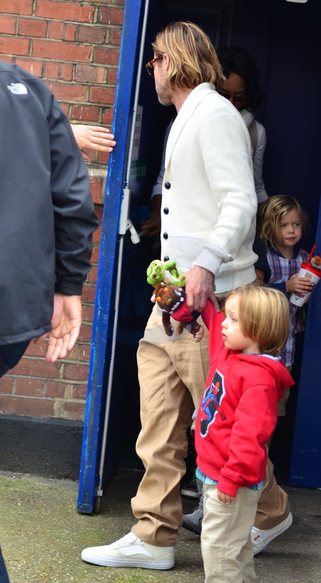Brad Pitt z dziecmi wraca z komedii 'Pan Popper i jego pingwiny' (Mr. Popper's Penguins) w Richmond