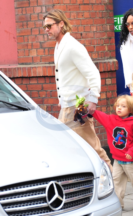 Brad Pitt z dziecmi wraca z komedii 'Pan Popper i jego pingwiny' (Mr. Popper's Penguins) w Richmond