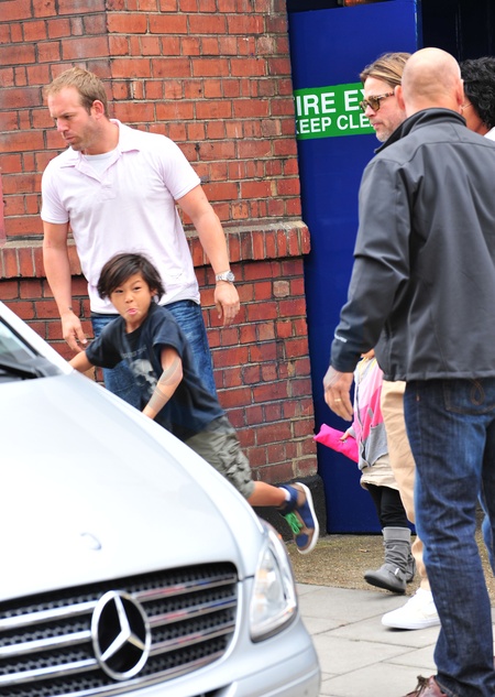 Brad Pitt z dziecmi wraca z komedii 'Pan Popper i jego pingwiny' (Mr. Popper's Penguins) w Richmond