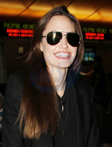 Angelina Jolie z corkami na lotnisku Lax, Los Angeles