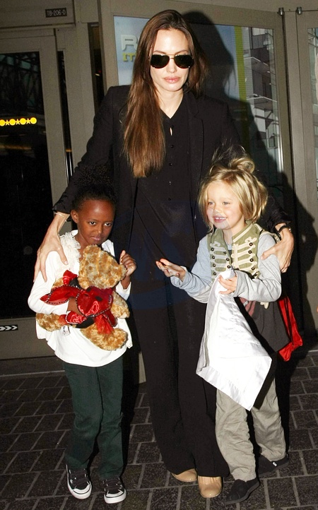 Angelina Jolie z corkami na lotnisku Lax, Los Angeles