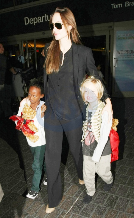Angelina Jolie z corkami na lotnisku Lax, Los Angeles