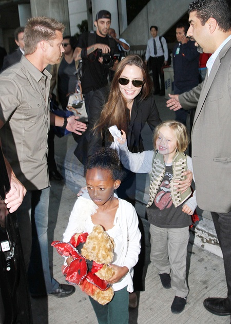 Angelina Jolie z corkami na lotnisku Lax, Los Angeles