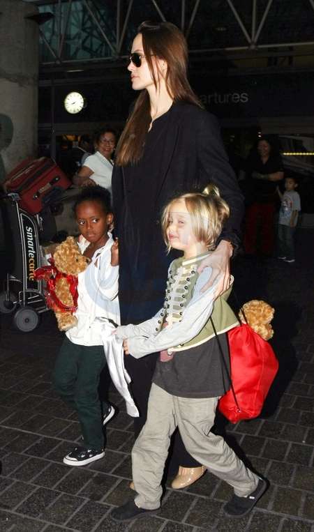 Angelina Jolie z corkami na lotnisku Lax, Los Angeles