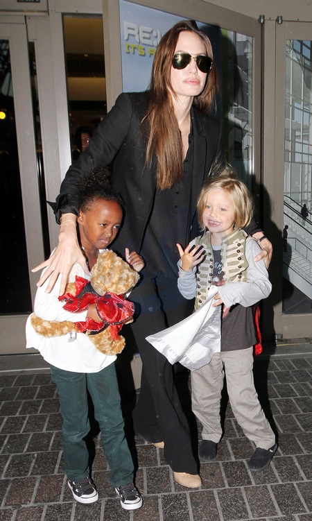 Angelina Jolie z corkami na lotnisku Lax, Los Angeles