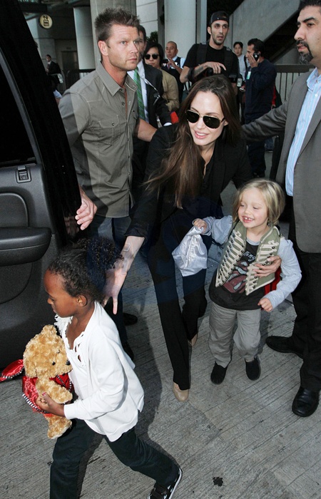Angelina Jolie z corkami na lotnisku Lax, Los Angeles