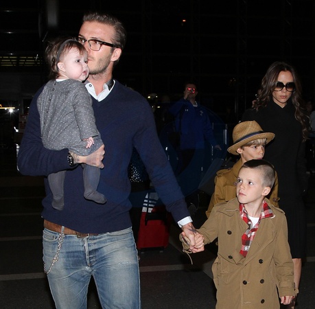 Beckhamowie na lotnisku w Los Angeles