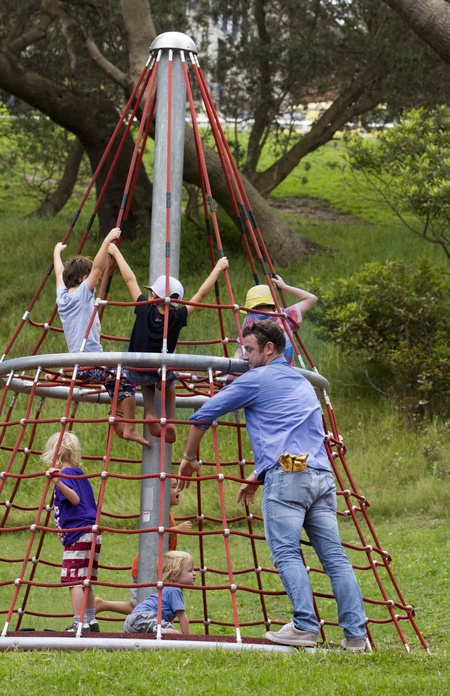 Liev Schreiber z synami na placu zabaw w Sydney