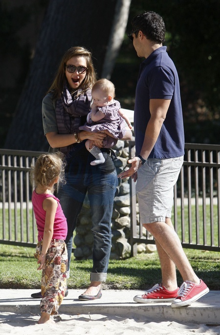 Jessica Alba z rodzina w Coldwater Park, Beverly Hills