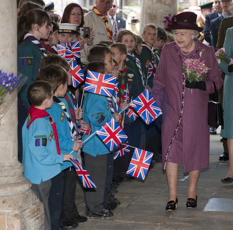 Krolowa Elzbieta II w rozowym plaszczu sprzed 5 lat, Londyn