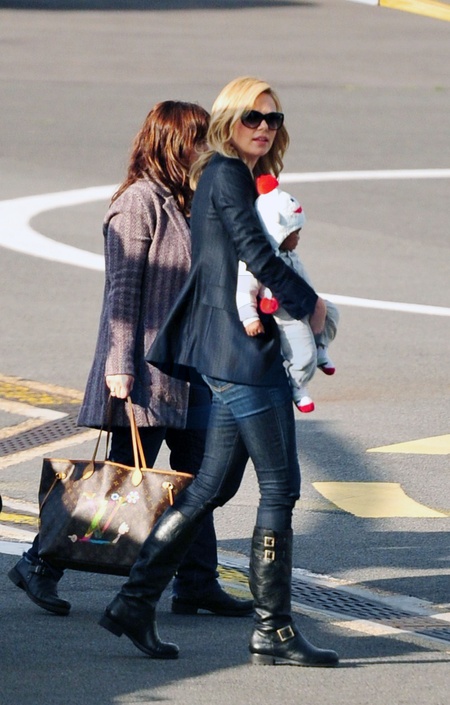 Charlize Theron z synkiem czekaja na helikopter, Londyn