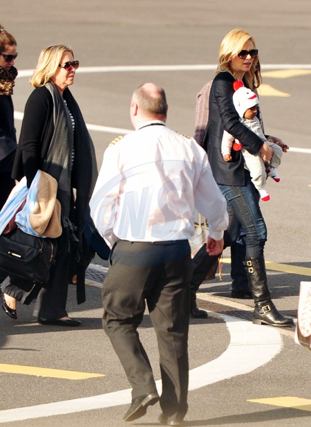 Charlize Theron z synkiem czekaja na helikopter, Londyn