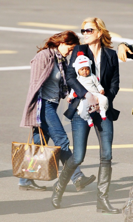 Charlize Theron z synkiem czekaja na helikopter, Londyn
