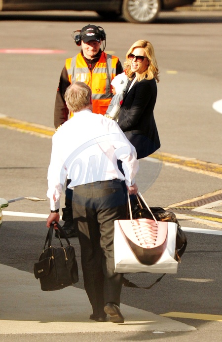 Charlize Theron z synkiem czekaja na helikopter, Londyn