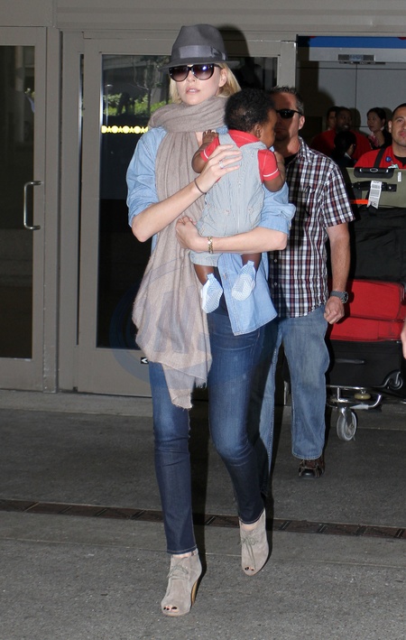 Charlize Theron z synkiem na lotnisku Lax, Los Angeles