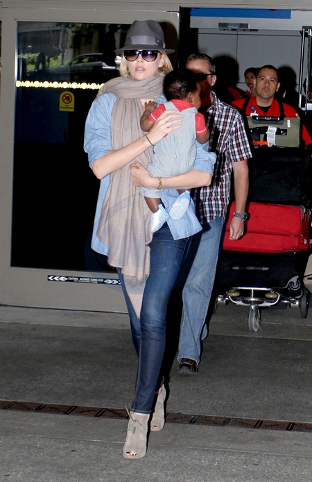 Charlize Theron z synkiem na lotnisku Lax, Los Angeles