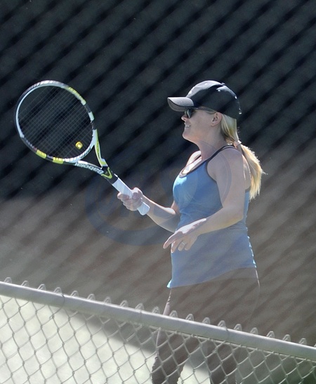 Reese Witherspoon z brzuszkiem gra w tenisa, Los Angeles