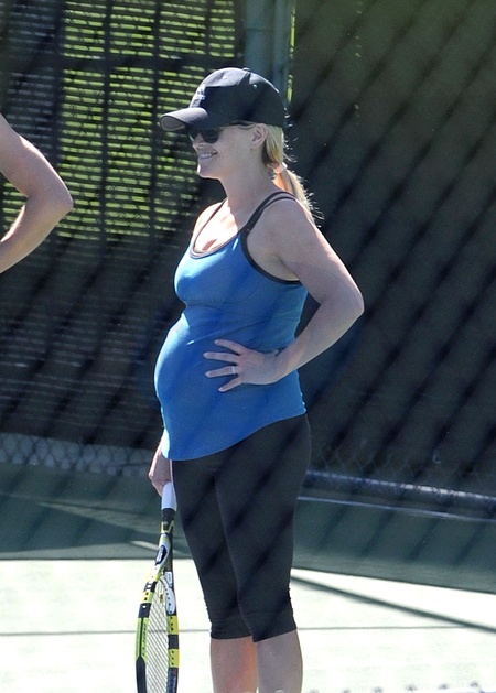Reese Witherspoon z brzuszkiem gra w tenisa, Los Angeles