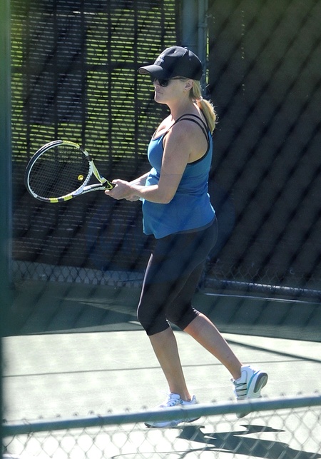 Reese Witherspoon z brzuszkiem gra w tenisa, Los Angeles