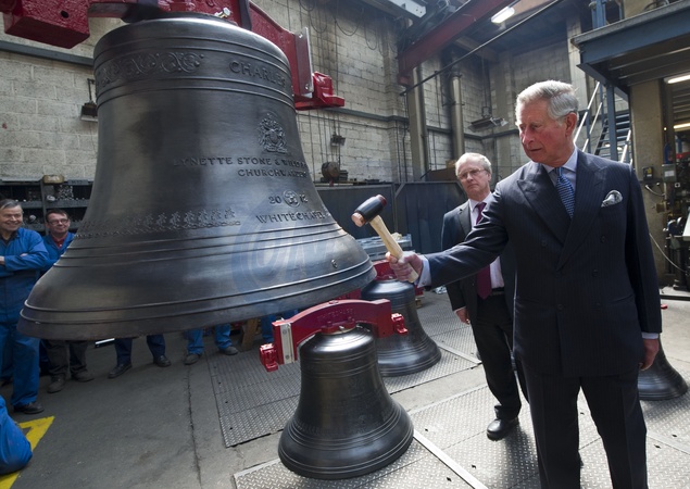 ksiaze Karol oglada dzwony w Whitechapel Bell Foundry