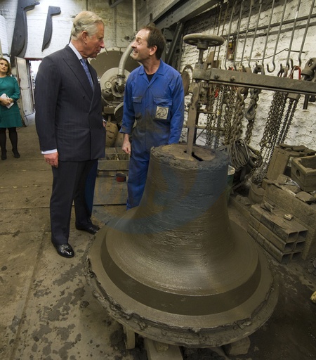 ksiaze Karol oglada dzwony w Whitechapel Bell Foundry