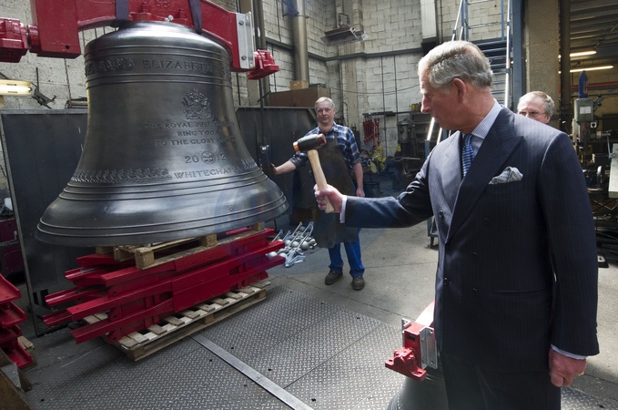 ksiaze Karol oglada dzwony w Whitechapel Bell Foundry