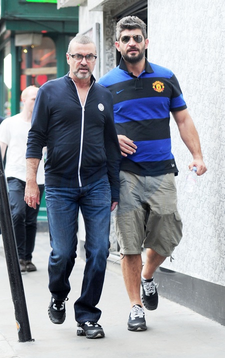 George Michael i jego chlopak Fadi Fawaz wracaja ze spaceru z psami, Londyn